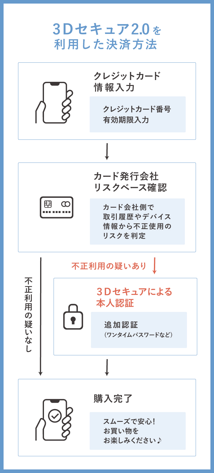 これにより、なりすましなどによるクレジットカードの不正利用からお客様を保護し、安全にご利用いただける環境をご提供します。