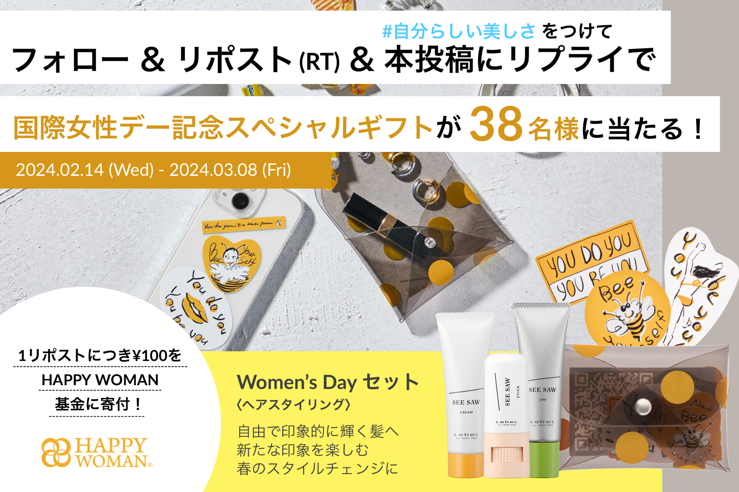 1リポストで\100がHAPPY WOMAN基金に寄付されます。